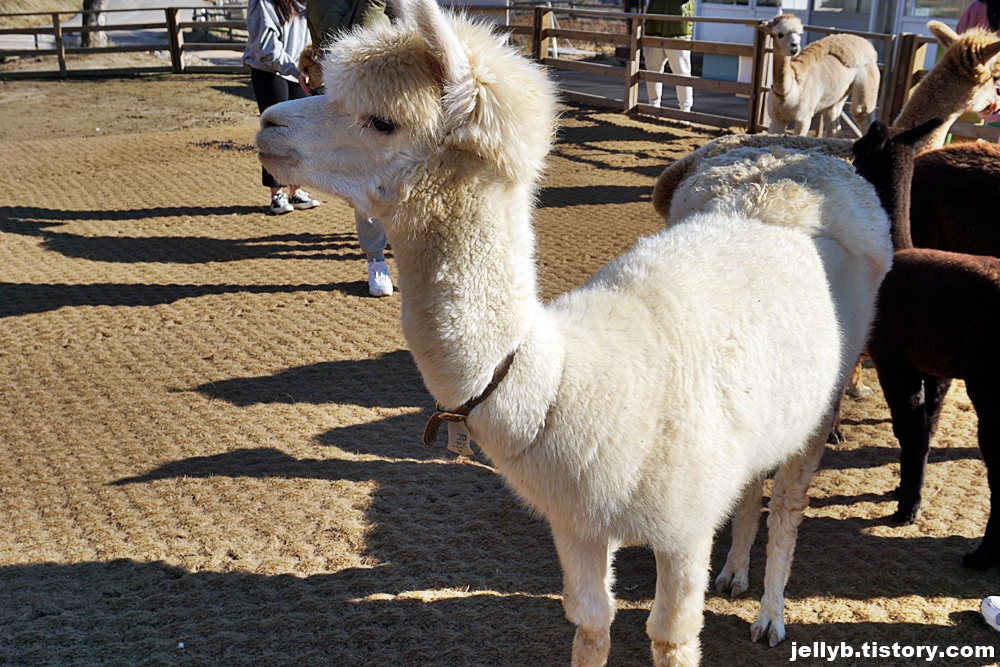 저 오른쪽 알파카가 자꾸 침뱉어서 가까이 못 다가갔다.