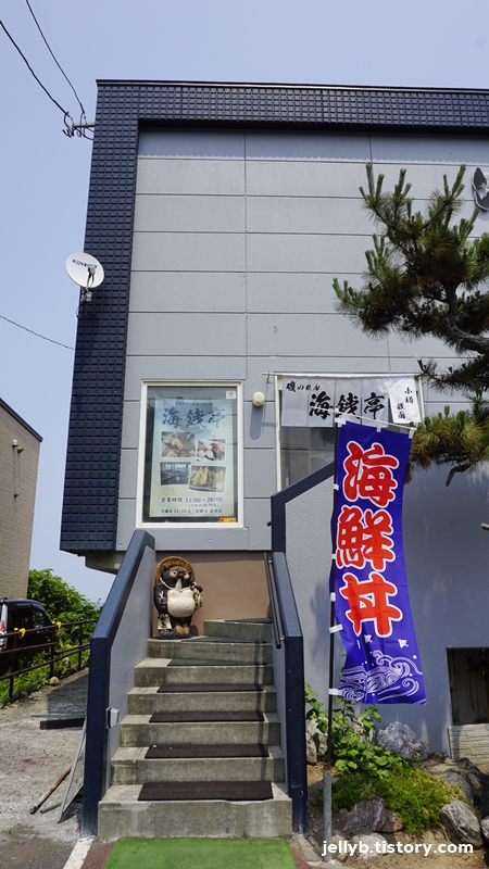 바닷가에서 놀다가 식당이 문 열 시간이 되서 아침겸 점심을 먹으러 역앞에 카이센테이 식당으로 갔다.