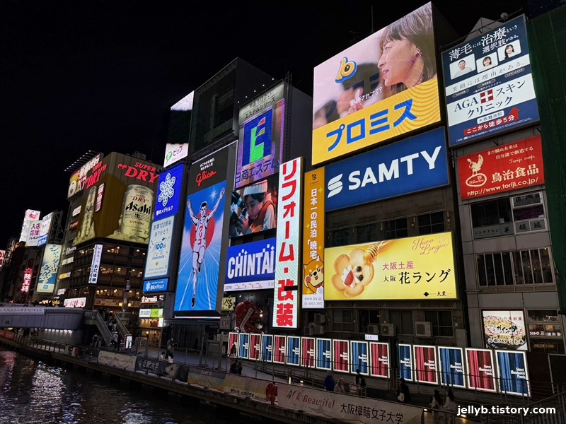 오사카 특유의 커다랗고 입체적인 간판과 저 타워가 잘 어우러진다.
