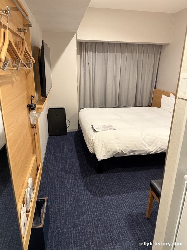 결국 그 중간쯤에 숙소를 잡았다. 소테츠 프레샤인(相鉄フレッサイン 京都清水五条)이었는데, 사실 소테츠는 도쿄에서도 묵어본 적이 있어 익숙한 이름이었다. 깔끔하고 무난했던 기억 덕분에 이번에도 자연스럽게 선택하게 됐다. 막상 체크인하고 보니 역시 기대를 저버리지 않았다. 깔끔한 객실에 짐을 놓을 공간도 충분했고, 창밖으로는 특별할 것 없는 교토 시내 풍경이 펼쳐졌다. 그게 또 나쁘지 않았다.