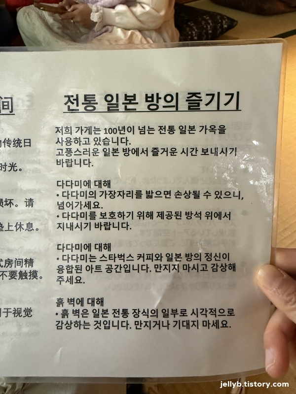 산넨자카에서 니넨자카 방향으로 내려오다 보면 눈에 띄는 스타벅스 하나가 있다. 오래된 일본 전통 가옥을 그대로 살린 곳으로, 꽤 유명한 곳인지 들어서자마자 만석이었다. 그래도 여기까지 왔으니 일단 주문부터 해두고 자리가 나길 기다렸다. 관광지 특성상 다들 바쁘게 움직이는 탓인지 생각보다 금방 자리가 났다.